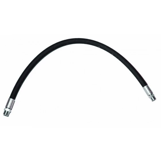 Tuyau renforcé en tresse acier, tube intérieur et robe extérieure en caoutchouc synthétique.