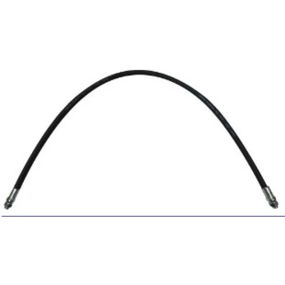 Tuyau renforcé en tresse acier, tube intérieur et robe extérieure en caoutchouc synthétique.